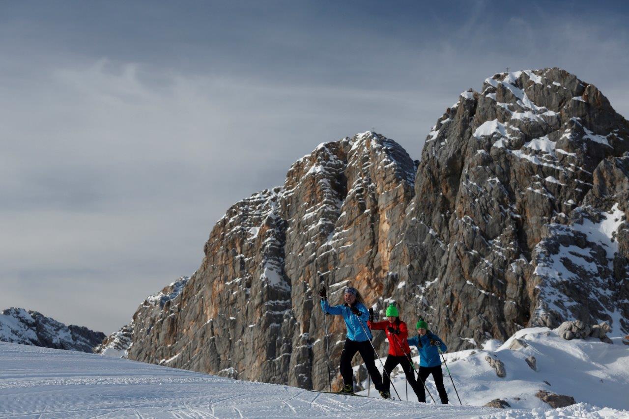 Langläufer können ab sofort ihre Spuren im Antlitz des Dachsteins ziehen. Inmitten der unvergleichlichen Bergkulisse wurde eine 15 Kilometer lange Panoramaloipe auf 2.700 Höhenmetern gespurt.