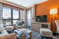 Und halt die Lage: Vor dem Haus fährt im Viertelstundentakt der Bus ins Ortszentrum, zu Fuß ist man mit dem Aufzug vorbei an einer weiteren Pierre & Vacances-Anlage, Les Terrasses d’Eos, in einer guten Viertelstunde dort. Oder man steigt halt direkt vor dem Haus auf die Ski und ist direkt auf der Piste. Luxus zeigt sich halt nicht nur IN der Unterkunft, sondern auch VOR dem Haus. Dass man von den 120 Balkonen einen absolut bomastischen Rundblick in das Hochtal von Flaine hat – brauchen wir hier wohl nicht erwähnen, oder?