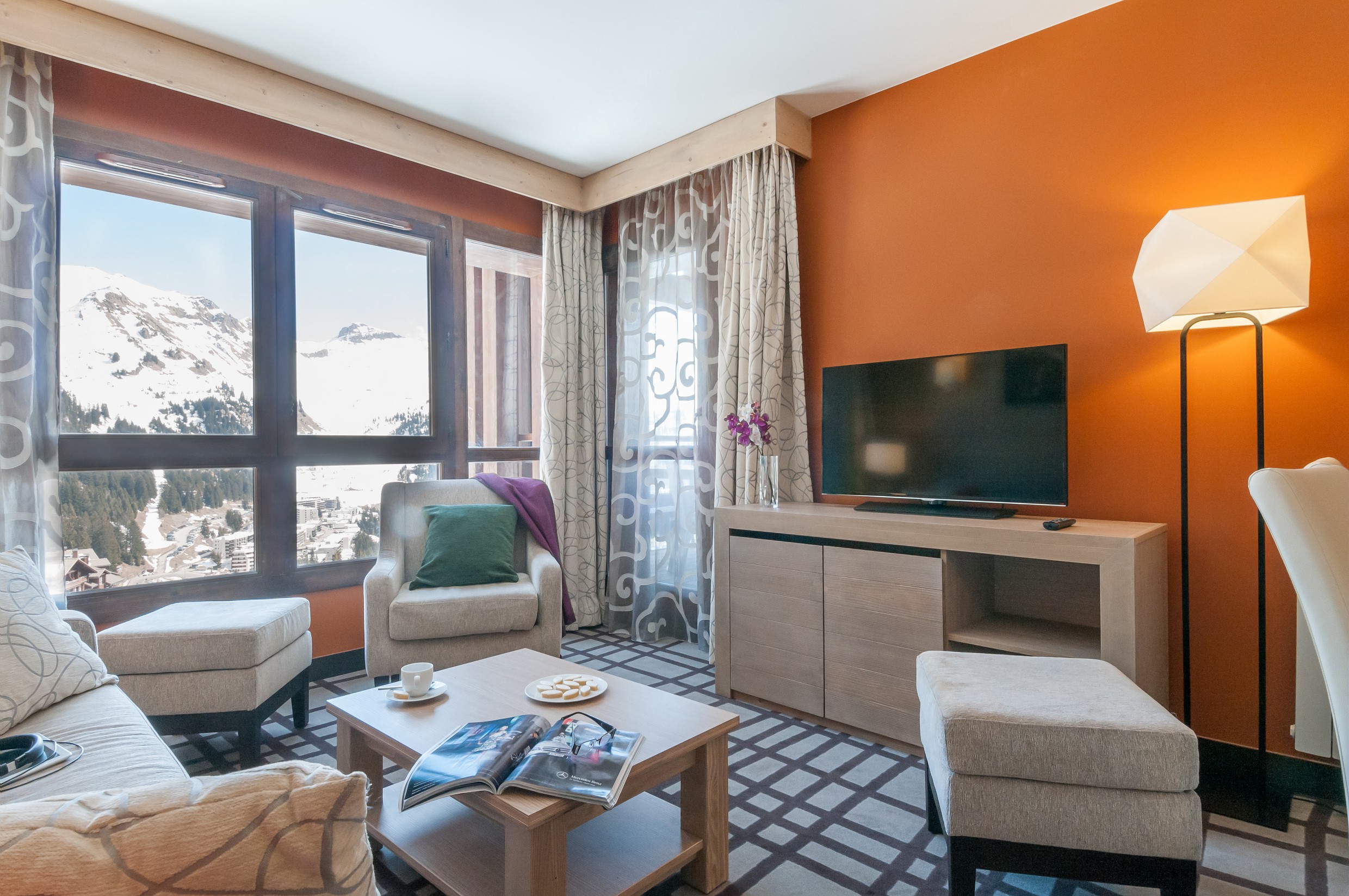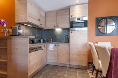 Etwas oberhalb des Hauptortes Flaine Forum liegt das Pierre & Vacances-Resort – mit gut 100 Appartements auf 5-Sterne-Niveau, die auch für Familien mit Kindern bestens passen: Ein separates Schlafzimmer, ansprechende Holz-Innenarchitektur (selbst der Aufzug ist „aus Holz“ und einer Küche zum Selberkochen, was den finanziellen Rahmen eines Skiurlaubs doch ein wenig überschaubarer gestaltet. 🙂 Es gibt einen kleinen Minimarkt in der Anlage, ausgiebige Skiräume und ansprechende Chill-Möglichkeiten am offenen Kamin für alle. Und für einen selbst vielleicht noch einen Ausflug ins Deep Nature Spa (auch so ein Markenzeichen der Pierre & Vacances Anlagen) mit Sauna, Hammam, Erlebnisduschen und einer großen Bandbreite an Wellness-Anwendungen. Wer einfach nur ins Hallenbad will: Es steht mit Sauna, Dampfbad und Außen-Whirlpool für alle Hausgäste kostenlos offen!