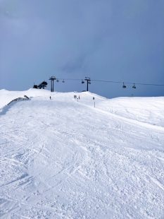 Trotzdem, irgendwann einmal ruft der Grubenkopf. Wir fahren bis hinauf zum höchsten Punkt des Skigebiets auf 2800 m und fahren mit der roten „10“ oder der wunderbaren schwarzen „9“ oder der schwarzen „11“ bis hinunter zum Rifflsee auf auf 2232 m. Wer mag, lässt’s laufen bis zum Muttenkopf-Sessellift – oder er macht gleich die Talabfahrt von 2800 m auf 1680 m in Mandarfen – mit rund 6 km Länge und 1120 „Tiefenmetern“ durchaus herausfordernd für die Oberschenkel!